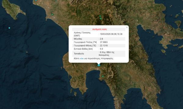 Σεισμός 2,8 ρίχτερ στην Καλαμάτα