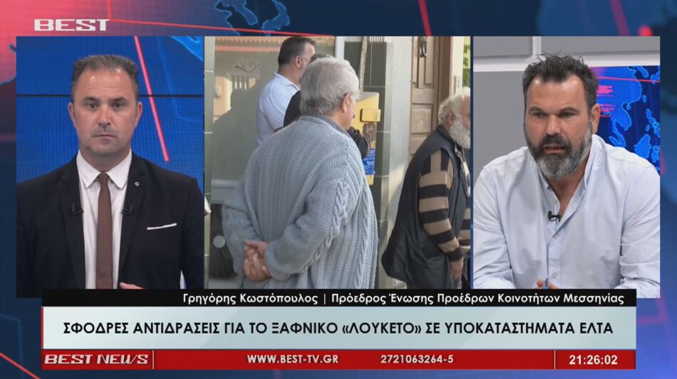 Μιλώντας στην τηλεόραση BEST o Γρηγόρης Κωστόπουλος στάθηκε στις άμεσες ενέργειες της Ένωσης Προέδρων Κοινοτήτων του νομού και χαρακτήρισε την απόφαση αυτή εντελώς λανθασμένη, καλώντας τους βουλευτές του νομού και τους εκπροσώπους της αυτοδιοίκησης να συνδράμουν για την αποτροπή αυτής της κατάστασης διότι «η περιφέρεια έχει ανάγκη από τις υπηρεσίες που έχουν μείνει, να είναι αναβαθμισμένες», από τα κέντρα υγείας μέχρι τα ΑΤΜ.