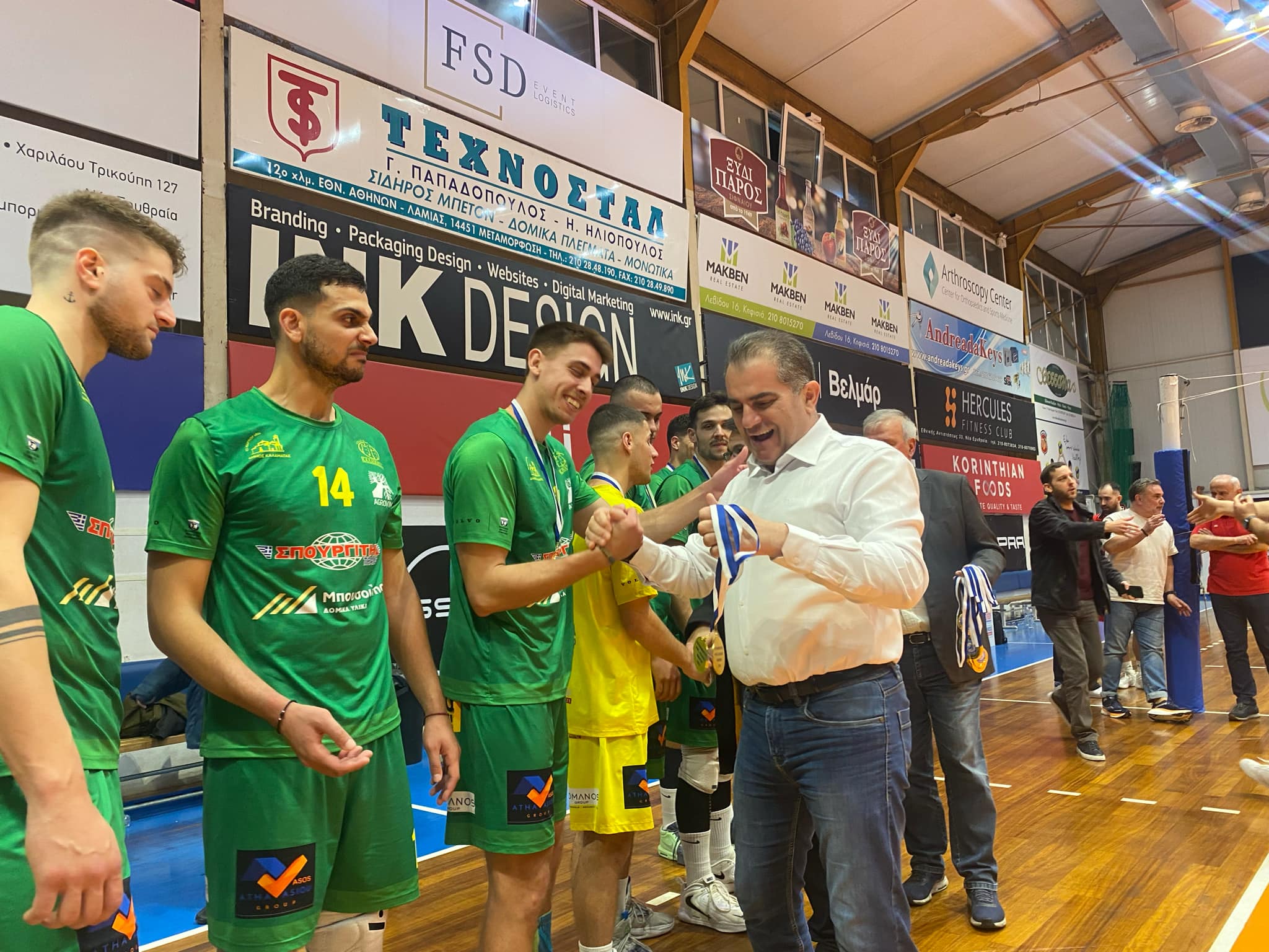 Η ημέρα παρότι δεν συνδυάστηκε με νίκη, συνδυάστηκε με κούπα… την οποία σήκωσαν παίκτες, προπονητές και παράγοντες σε κλίμα χαράς και συγκίνησης αμέσως μετά το τέλος του αγώνα. Στο πλευρό τους είχαν και αρκετούς φίλους αλλά και του πρώτου πολίτη της Καλαμάτας. Ο δήμαρχος Θανάσης Βασιλόπουλος -που νωρίτερα είχε βρεθεί στο Ζηρίνειο για να παρακολουθήσει το ματς της Μαύρης Θύελλας – έδωσε το παρών στο κλειστό «Στ. Καλαϊτζης» και ανέλαβε να αποδώσει τα μετάλλια στους πρωταθλητές και να ζήσει μαζί τους την ξεχωριστή αυτή στιγμή…
