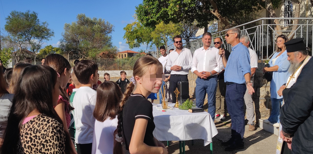 Ο διευθυντής του Δημοτικού Σχολείου Βαλύρας Γιώργος Κοσμόπουλος, αφού ευχήθηκε σε όλους για τη νέα σχολική χρονιά, ευχαρίστησε τον Δήμαρχο για την παρουσία του και για την επικείμενη ανακαίνιση του σχολείου.