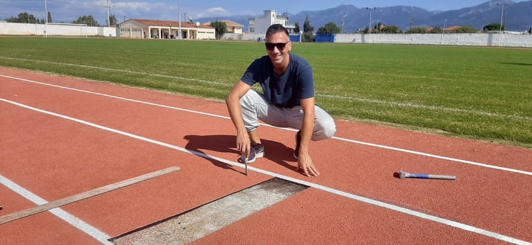Στο Δημοτικό στάδιο βρίσκεται ο Λούης Τσάτουμας πρωταθλητής του Μήκους και νυν προπονητής του Μεσσηνιακού Γ.Σ, ο οποίος κατάγεται από τη Μεσσήνη συμμετέχοντας κι αυτός στις εργασίες στο ταρτάν όπου θα τοποθετηθεί ο κατάλληλος εξοπλισμός για τα αθλήματα του στίβου, συμβάλλοντας στην αλλαγή της εικόνας του σταδίου της πόλης.
