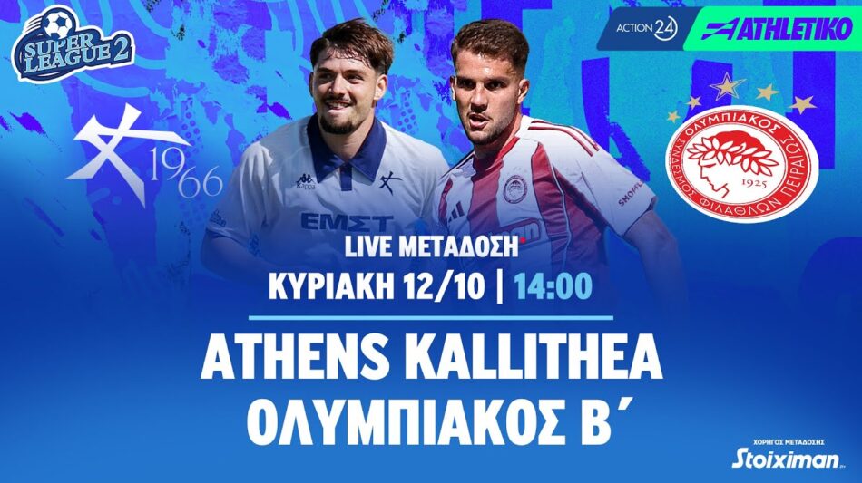 Αύριο, στις 2 μ.μ., δείτε LIVE στο ACTION 24 και στο BEST TV την αναμέτρηση ATHENS KALLITHEA – Ολυμπιακός Β’.