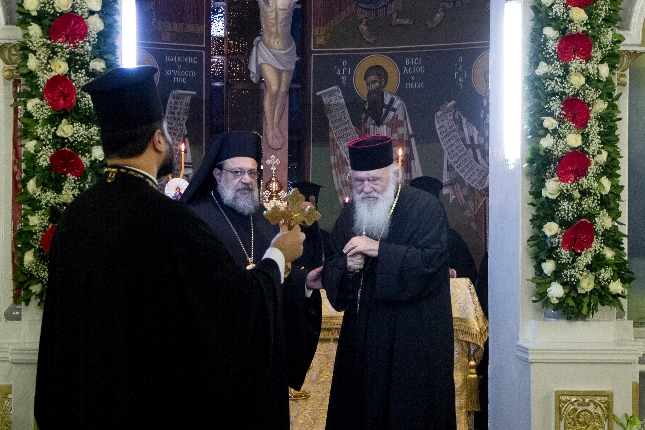 Για μια ακόμη χρονιά και για μια ακόμη φορά ο Αρχιεπίσκοπος Αθηνών & Πάσης Ελλάδος κ.κ. Ιερώνυμος επισκέφθηκε τον εορτάζοντα μητροπολίτη Μεσσηνίας Χρυσόστομο στην Καλαμάτα και του ευχήθηκε για τα ονομαστήριά του. Η παρουσία του ξεχώρισε στον πολυαρχιερατικό Εσπερινό ο οποίος τελέστη στον Ναό Αγίου Ιωάννου Χρυσοστόμου, με την συμμετοχή 18 Αρχιερέων.
