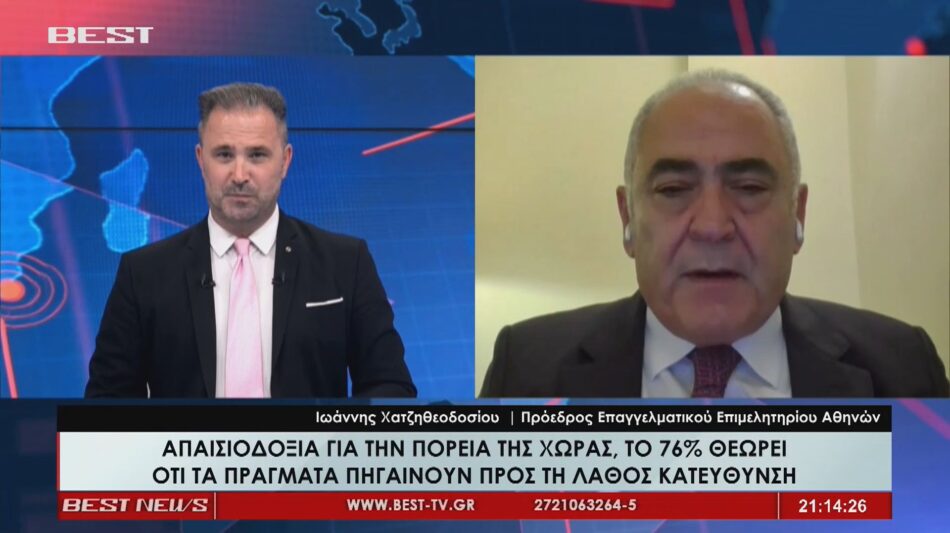 Η ακρίβεια σε βασικά είδη και υπηρεσίες, η στεγαστική κρίση, το ενεργειακό πρόβλημα είναι μια «βόμβα στα θεμέλια της χώρας μας» όπως είπε ο πρόεδρος του Επαγγελματικού Επιμελητηρίου Αθηνών τονίζοντας την ανάγκη «να γίνει μια εθνική πολιτική γιατί όλοι πρέπει να καταλάβουν ότι στα ερείπια πάνω κανένας δεν επιβιώνει!».