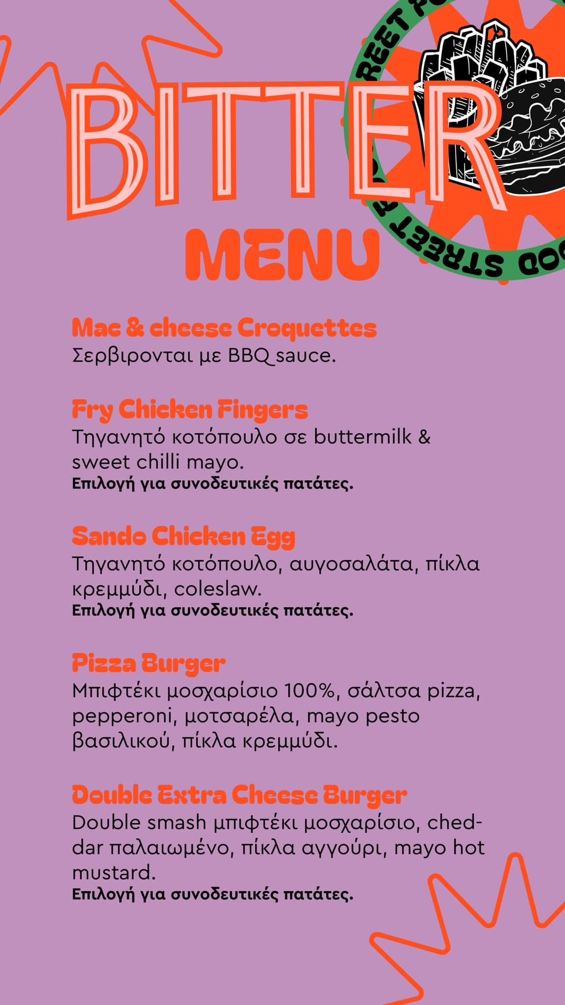 Οι προτάσεις του Bitter φέρουν τις μοναδικές «πινελιές» του γνωστού, και μέσω του MasterChef 6, δημιουργικού νέου σεφ Νικήτα Μπατσικούρα και έρχονται σε ποικιλία και ως η πιο μοδάτη επιλογή menu
