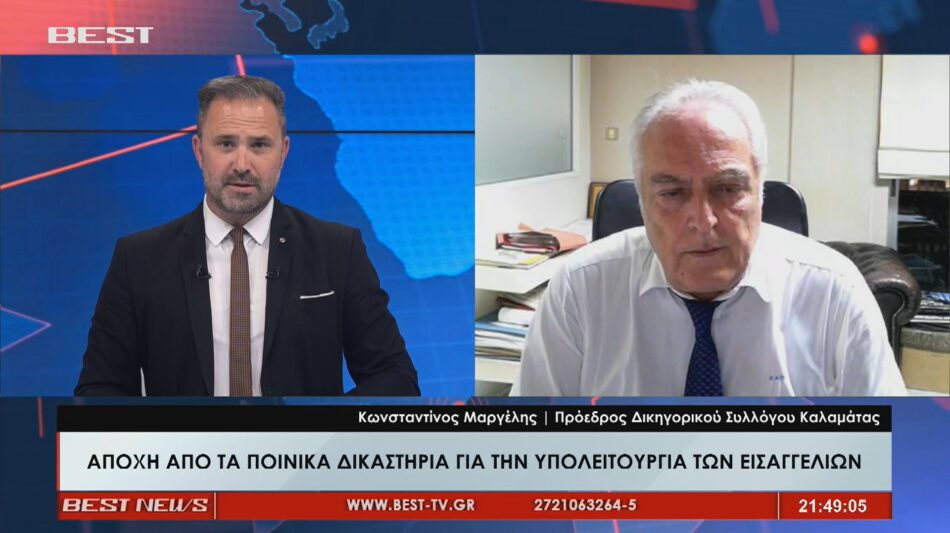 Χαρακτηριστικά τα όσα ανέφερε μιλώντας στο Κεντρικό Δελτίο Ειδήσεων της τηλεόρασης BEST ο Πρόεδρος του δικηγορικού συλλόγου Καλαμάτας Κώστας Μαργέλης σημειώνοντας