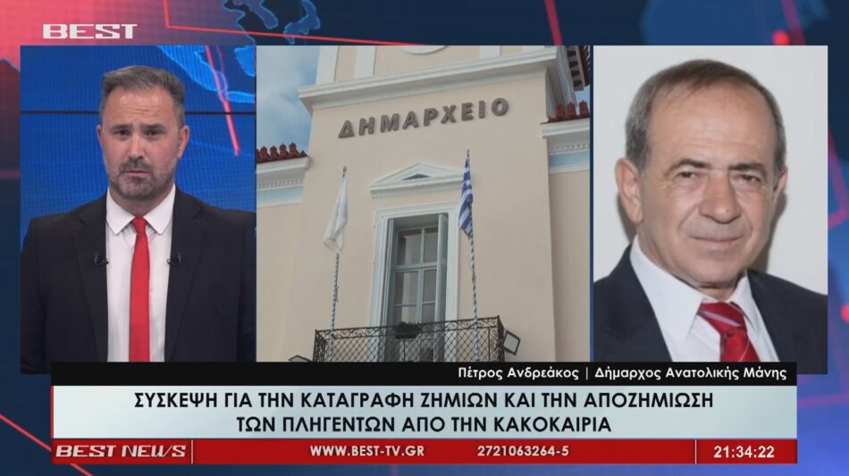 Η Ανατολική Μάνη μετρά τις πληγές της μετά το πέρασμα της κακοκαιρίας Byron που έπληξε, σπίτια, επιχειρήσεις και καλλιέργειες. Σύσκεψη εργασίας πραγματοποιήθηκε το πρωί της Δευτέρας στο γραφείο του Δημάρχου Ανατολικής Μάνης, με αντικείμενο την αποτύπωση των ζημιών που προκάλεσαν τα έντονα καιρικά φαινόμενα της 4ης Δεκεμβρίου 2025 και τον καθορισμό της διαδικασίας αποζημίωσης, στην οποία συμμετείχαν ο Υφυπουργός Κλιματικής Κρίσης και Πολιτικής Προστασίας, Κώστας Κατσαφάδος, ο Υφυπουργός Εθνικής Άμυνας, Θανάσης Δαβάκης, ο βουλευτής Λακωνίας, Νεοκλής Κρητικός, ο Περιφερειάρχης Πελοποννήσου, Δημήτρης Πτωχός, ο Δήμαρχος Ευρώτα, Δήμος Βέρδος, ο Γενικός Γραμματέας Αποκατάστασης Φυσικών Καταστροφών και Κρατικής Αρωγής, Πέτρος Καμπούρης, ο Προϊστάμενος της Διεύθυνσης Κρατικής Αρωγής Επιχειρήσεων και Φορέων, Νικόλαος Αβράμης, ο Αντιπεριφερειάρχης Λακωνίας, Θεόδωρος Βερούτης, ο Αντιπεριφερειάρχης Χωρικού Σχεδιασμού και Διαχείρισης Ακίνητης Περιουσίας, Σπύρος Τζινιέρης, καθώς επίσης και ο Περιφερειακός Σύμβουλος, Παναγιώτης Τζινάκος. Παρόντες ήταν επίσης αυτοδιοικητικοί παράγοντες και υπηρεσιακά στελέχη.