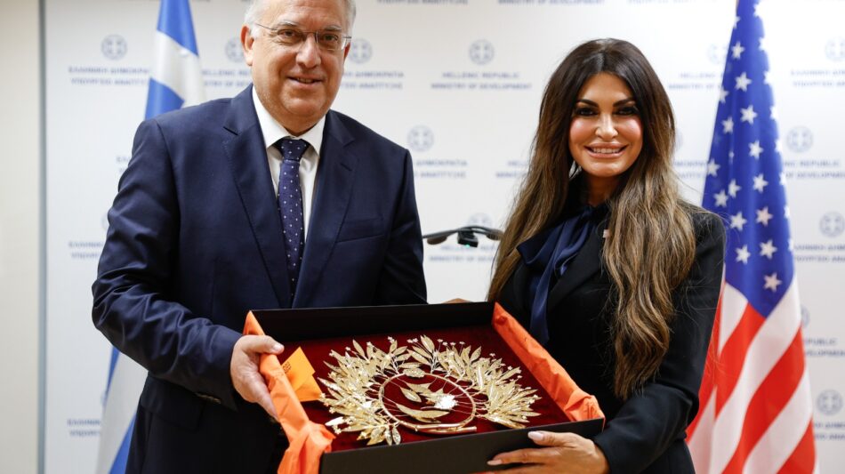 Ο Υπουργός Ανάπτυξης κ. Τάκης Θεοδωρικάκος υποδέχθηκε την Πρέσβη των Ηνωμένων Πολιτειών της Αμερικής, κα Kimberly Guilfoyle, στο Υπουργείο, στο πλαίσιο της ενίσχυσης της στρατηγικής συνεργασίας των δύο χωρών στις επενδύσεις, τη ναυπηγική βιομηχανία και το εμπόριο. Στο πλαίσιο της συνάντησης με την κα Guilfoyle, ο Υπουργός Ανάπτυξης ανακοίνωσε την θέσπιση άμεσης νομοθετικής πρωτοβουλίας για τη διεύρυνση των δραστηριοτήτων της ONEX, με τη συμμετοχή της κρατικής αναπτυξιακής τράπεζας των ΗΠΑ, DFC, ενισχύοντας τον στρατηγικό ρόλο του λιμανιού στα ναυπηγεία Ελευσίνας ως ενεργειακού, εμπορικού και διακομετακομιστικού κέντρου.
