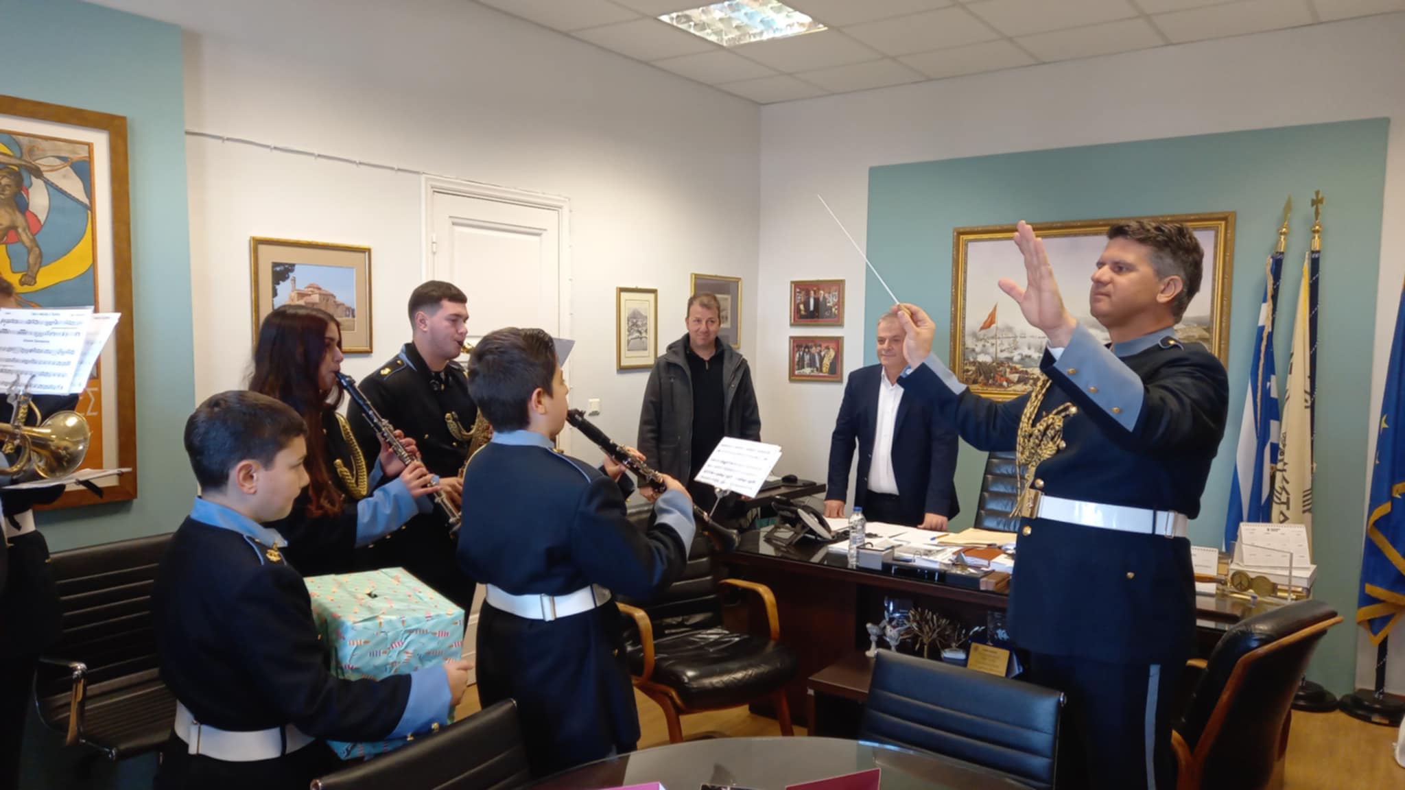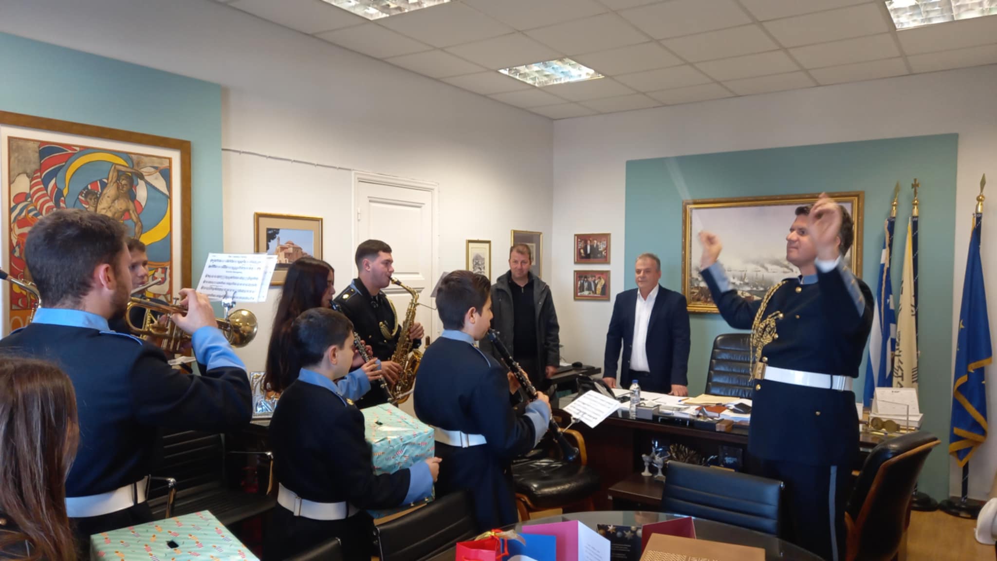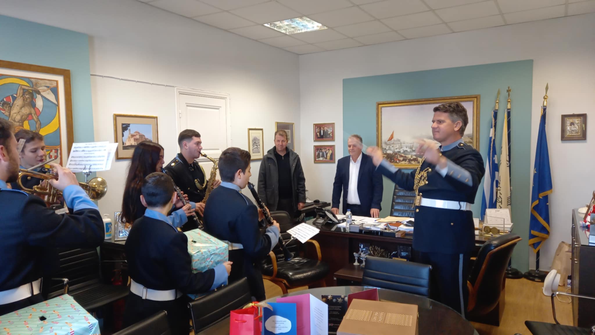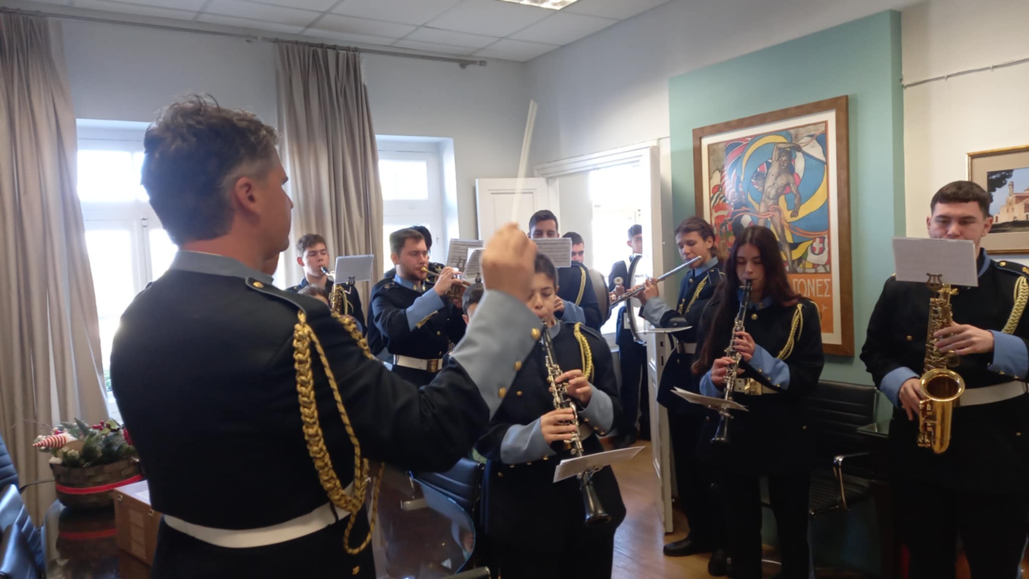 Οι μελωδίες της Φιλαρμονικής πλημμύρισαν το Δημαρχείο, μεταφέροντας το εορταστικό κλίμα των ημερών.