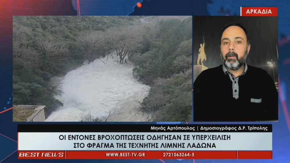 Σε κατάσταση έκτακτης ανάγκης Πολιτικής Προστασίας κηρύχθηκε ο Δήμος Γορτυνίας στην Π.Ε. Αρκαδίας, μετά τα σοβαρά προβλήματα που προκάλεσαν οι έντονες βροχοπτώσεις των τελευταίων εβδομάδων, με πλημμύρες και κατολισθήσεις. Παράλληλα βίντεο από το φράγμα της τεχνητής λίμνης Λάδωνα ανάρτησε ο Κώστας Νίτσιος, μετά την υπερχείλιση που σημειώθηκε το Σάββατο 7 Φεβρουαρίου στις 20:10, λόγω αυξημένων υδάτων. Οι εικόνες καταγράφουν την έντονη ροή του νερού στην περιοχή.
