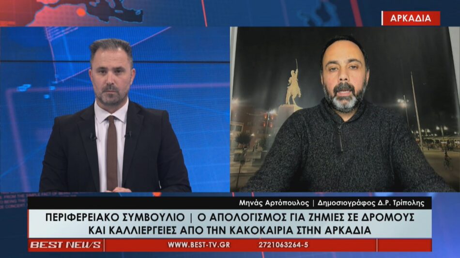 Ο απολογισμός των ζημιών σε δρόμους και καλλιέργειες από την κακοκαιρία στην Αρκαδία πραγματοποιήθηκε μεταξύ άλλων κατά τη συνεδρίαση του Περιφερειακού Συμβουλίου Πελοποννήσου. Παράλληλα αυτοψία στη Γορτυνία έκανε ο ο Καθηγητής Ευθύμιος Λέκκας μετά και τις τελευταίες κατολισθήσεις.
