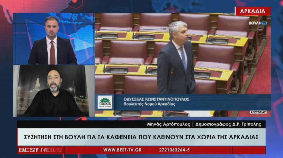 Όλα όσα συζητήθηκαν στη Βουλή για τα καφενεία που κλείνουν στα χωριά της Αρκαδίας βρέθηκαν ψηλά στην ατζέντα της ενημέρωσης στην στήλη «τα νέα της Αρκαδίας» στο κεντρικό δελτίο ειδήσεων του BEST, σε σχολιασμό του Μηνά Αρτόπουλου.