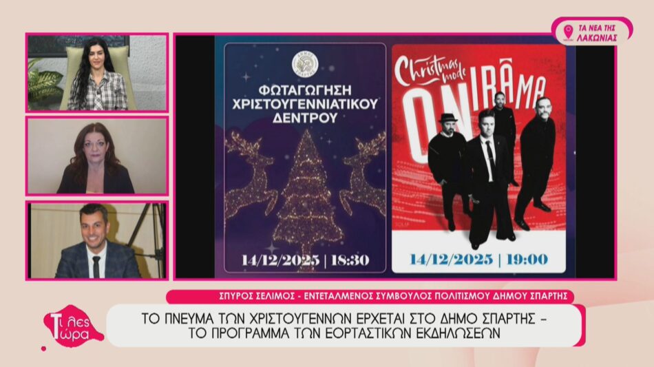 ΤΟ ΠΝΕΥΜΑ ΤΩΝ ΧΡΙΣΤΟΥΓΕΝΝΩΝ ΕΡΧΕΤΑΙ ΣΤΟ ΔΗΜΟ ΣΠΑΡΤΗΣ – ΤΟ ΠΡΟΓΡΑΜΜΑ ΤΩΝ ΕΟΡΤΑΣΤΙΚΩΝ ΕΚΔΗΛΩΣΕΩΝ