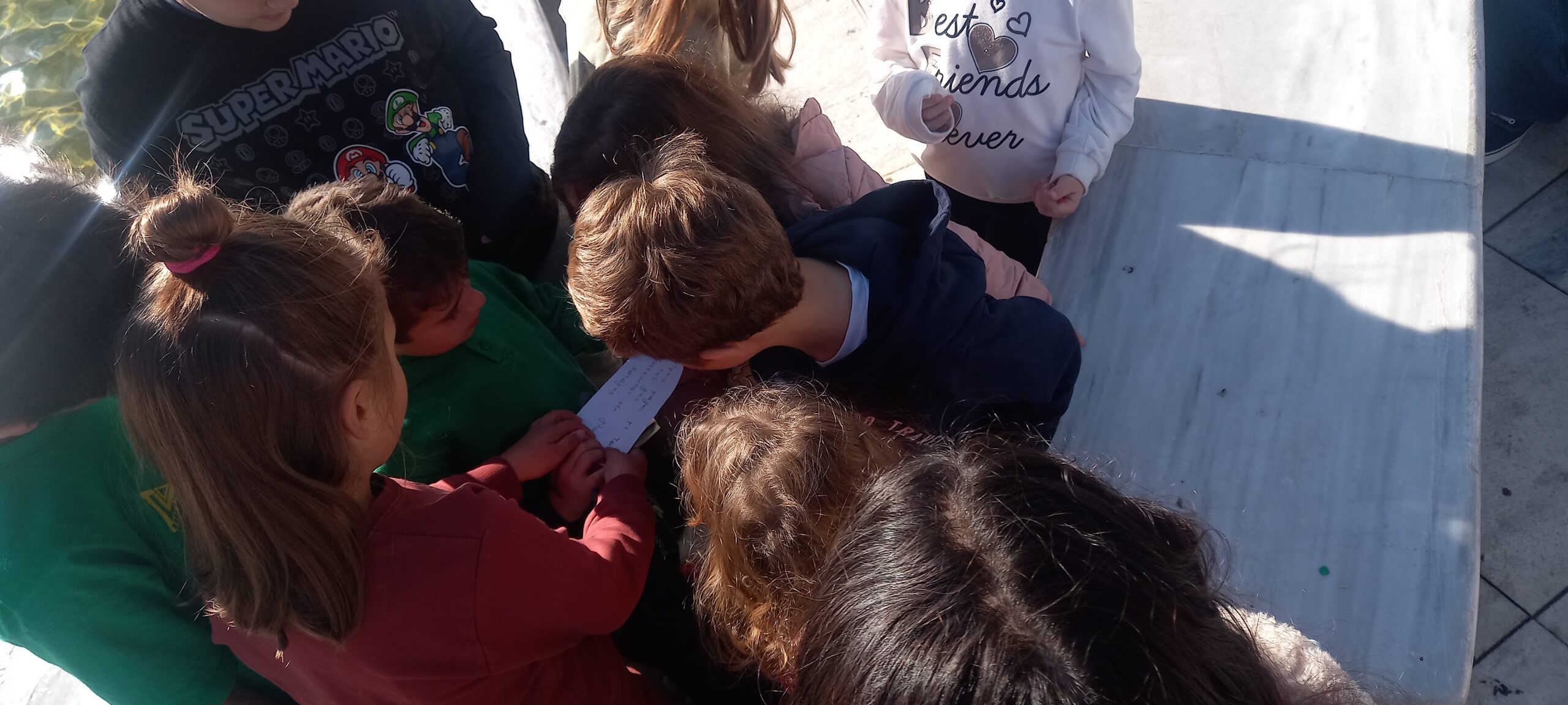 Παιδιά καθε ηλικίας, χωρισμένα σε γκρουπ αναζήτησαν τα στοιχεία και έλυσαν τους γρίφους, ακολουθώντας το μονοπάτι και τα χνάρια για το σεντούκι του θησαυρού.