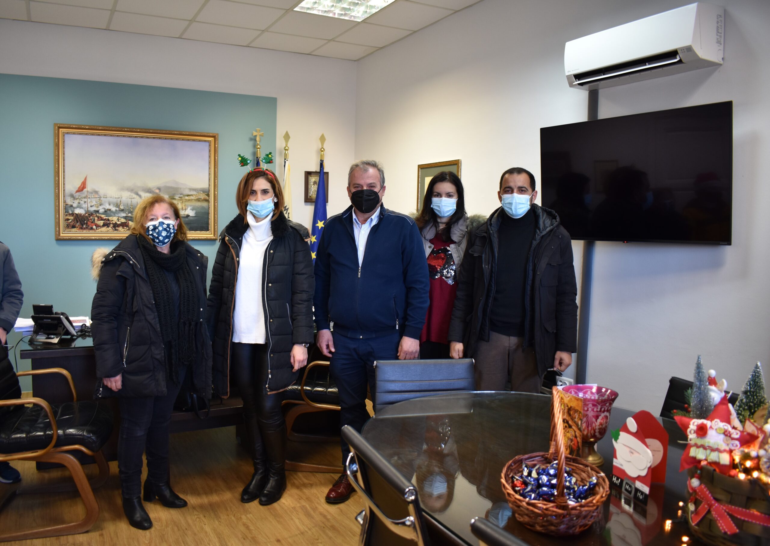 Ο Δήμαρχος υποδέχθηκε στο γραφείο του θερμά όλα τα παιδιά, τα ευχαρίστησε για την ωραία πρωτοβουλία τους και αντάλλαξε μαζί τους ευχές για χρόνια πολλά, καλά Χριστούγεννα και καλή πρόοδο. Ευχαρίστησε δε στο πρόσωπο της Διευθύντριας όλο το εκπαιδευτικό προσωπικό.