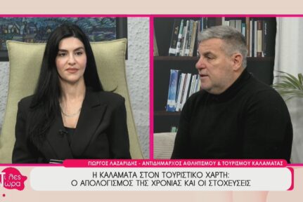 Ο Αντιδήμαρχος Τουρισμού και Αθλητισμού του Δήμου Καλαμάτας, κ. Γιώργος Λαζαρίδης, ήταν καλεσμένος στην εκπομπή «Τι λες τώρα» με την Αναστασία Μάντζαρη, σε μια εφ’ όλης της ύλης συζήτηση για την εντυπωσιακή τουριστική πορεία της πόλης το 2025. Κατά τη