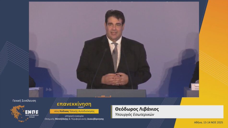 «Μας χωρίζουν πολύ λίγα μέτρα από το να ολοκληρωθεί κάτι το οποίο έπρεπε να γίνει γιατί ήταν μεγάλη ανάγκη», υπογράμμισε ο Υπουργός Εσωτερικών Θοδωρής Λιβάνιος μιλώντας στη γενική συνέλευση της Ένωσης Περιφερειών Ελλάδας (ΕΝΠΕ) για τον νέο Κώδικα της Αυτοδιοίκησης.