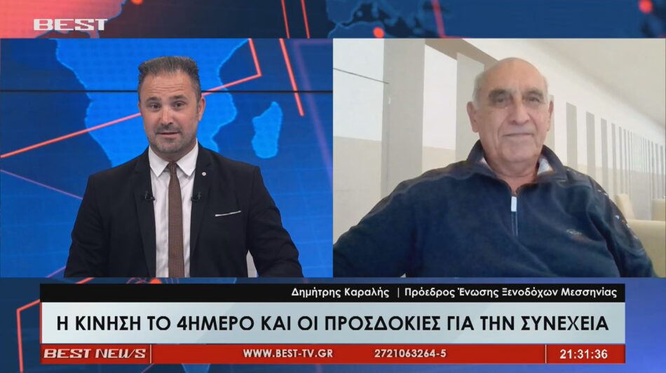 Θετική η προέκταση του επετειακού τετραήμερου της 28η Οκτωβρίου με πολλούς να επιλέγουν την Πελοπόννησο και τη Μεσσηνία. Μιλώντας στο Κεντρικό Δελτίο Ειδήσεων της τηλεόρασης BEST ο Πρόεδρος Ξενοδόχων Μεσσηνίας Δημήτρης Καραλής ανέφερε «Η αυριανή ημέρα δίνει την τελευταία ανάσα για τους επισκέπτες. Είμαστε στις τελευταίες ημέρες τις φετινής τουριστικής περιόδου με τις περισσότερες περιοχές να κλείνουν. Τα ξενοδοχεία κινήθηκαν με δύο ταχύτητες η φετινή σεζόν και η Πελοπόννησος είχε περισσότερο κόσμο με μειωμένες καταναλώσεις και λιγότερες διανυκτερεύσεις. Η Μεσσηνία και η Πελοπόννησος κατοχυρώνουν αυξανόμενη δυναμική στη δημοφιλία από Έλληνες και ξένους τουρίστες».