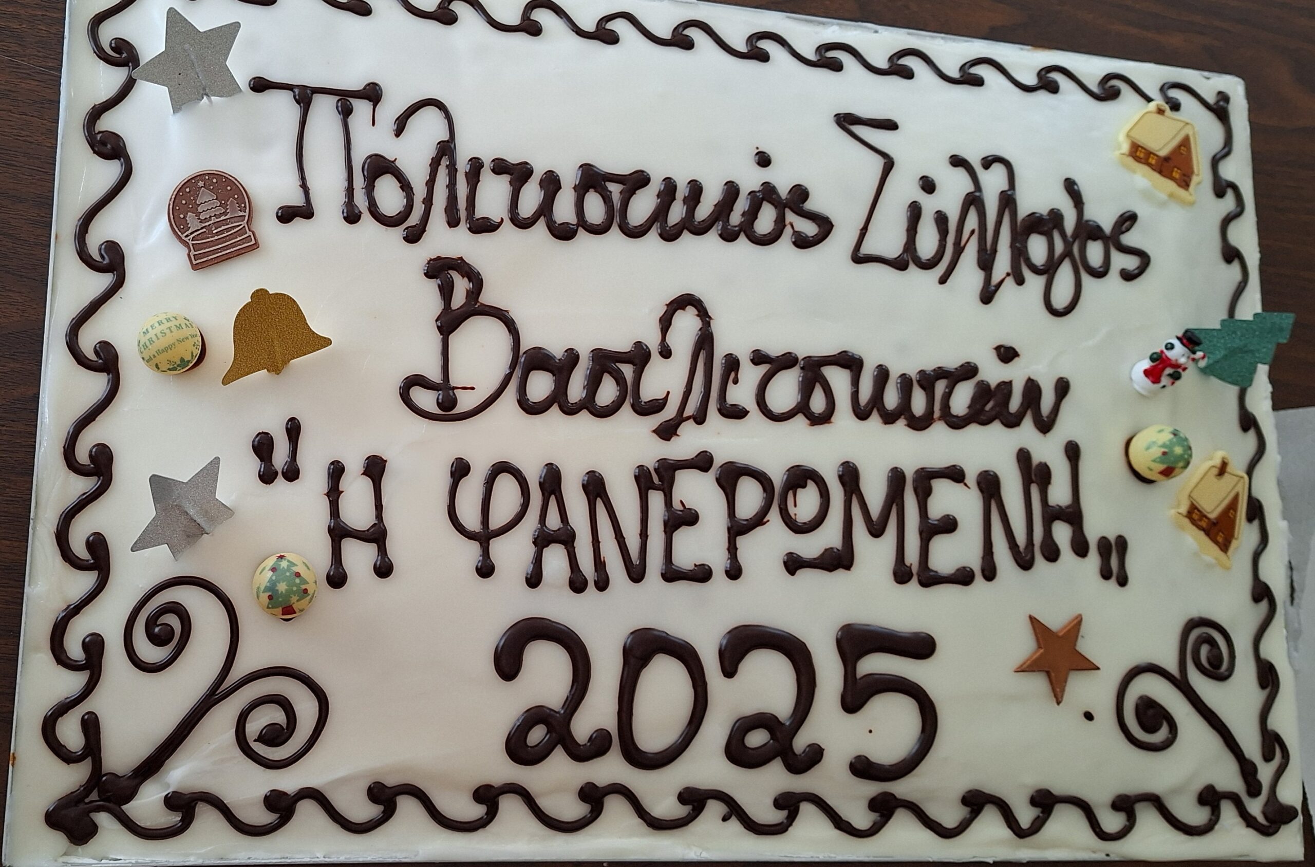 Την πρωτοχρονιάτικη βασιλόπιτα έκοψε την Κυριακή 19 Ιανουαρίου ο Πολιτιστικός Σύλλογος Βασιλιτσιωτών “Η ΦΑΝΕΡΩΜΕΝΗ”,. Η κοπή της πίτας έγινε στην αίθουσα του Συλλόγου στο Βασιλίτσι με τα μέλη και τους φίλους του Συλλόγου να δίνουν το παρών.