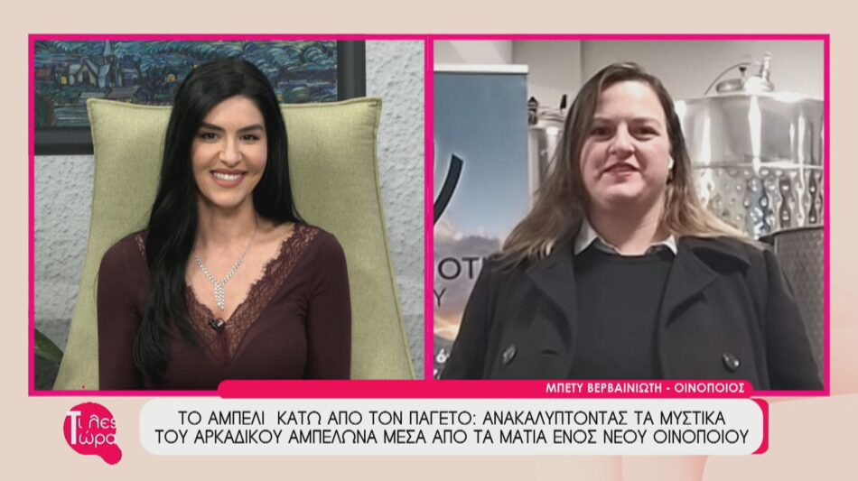 Η οινοποιός Μπέτυ Βερβαινιώτη από το οινοποιείο Vervenioti Winery στη Μαντινεία Αρκαδίας, βρέθηκε καλεσμένη στην εκπομπή «Τι λες τώρα» με την Αναστασία Μάντζαρη. Σε μια συζήτηση γεμάτη άρωμα κρασιού, αναλύσαμε τη δυναμική του οινοτουρισμού στην περιοχή, αλλά και το πώς η νέα γενιά εξελίσσει τις παραδοσιακές ποικιλίες. Ιδιαίτερη έμφαση δόθηκε στις τρέχουσες καιρικές συνθήκες, με την οινοποιό να εξηγεί πως ο παγετός και το κρύο του χειμώνα δεν αποτελούν απειλή για το αμπέλι, καθώς οι χαμηλές θερμοκρασίες γίνονται επικίνδυνες μόνο κατά την περίοδο της άνοιξης, όταν έχουν πλέον «ανοίξει» οι οφθαλμοί του φυτού.