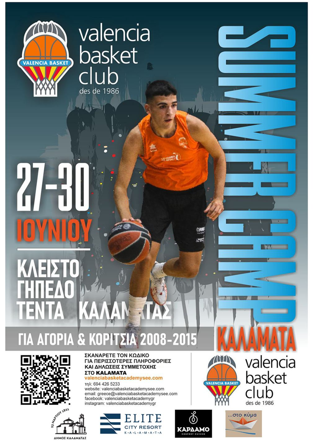 Μια από τις κορυφαίες ομάδες στην Ευρώπη, η Valencia Basket, θα φιλοξενηθεί τα προσεχή χρόνια στην Ελλάδα και την Κύπρο, συνεχίζοντας το πρωτοπόρο της πρόγραμμα παραγωγής νεαρών καλαθοσφαιριστών. Ο ιστορικός Ισπανικός Σύλλογος εγκαινίασε το 2017 τις εγκαταστάσεις της L’Alqueria del Basket, του μεγαλύτερου προπονητικού κέντρου μπάσκετ στην Ευρώπη, που κατασκευάστηκαν με σκοπό να γίνουν κέντρο ανάπτυξης προγραμμάτων μπάσκετ και εκπαίδευσης ταλαντούχων παικτών. Το camp VALENCIA Basket Club έρχεται 27 με 30 Ιουνίου στην Καλαμάτα.