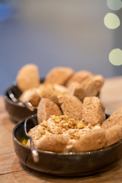 • Σκορδαλιά με κριθαρένιο ελαφρώς άζυμο ψωμί και καρύδια