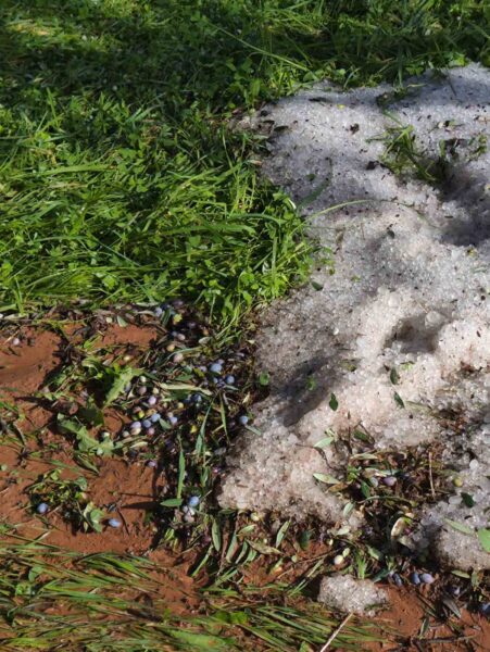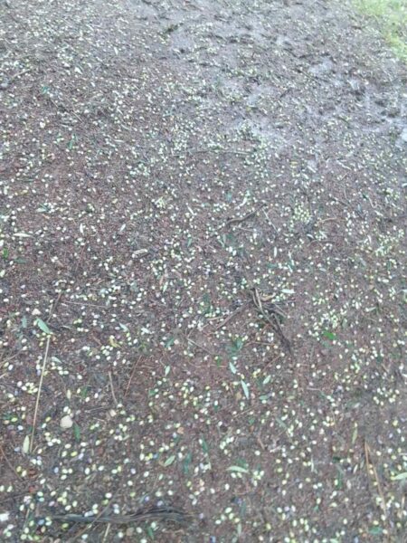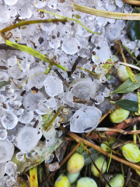 Η Κακοκαιρία «Adele» έφερε μαζί της… χαλάζι το οποίο «σκέπασε» χωράφια και ελαιοκαλλιέργειες, με προβλήματα να εντοπίζονται στους Γαργαλιάνους, Λαχανάδα, Φοινικούντα, σοβαρές ζημιές λόγω των τοπικών φαινομένων, ενώ στο Τρίκορφο οι ζημιές εκτιμάται πως ξεπερνούν το 50%.