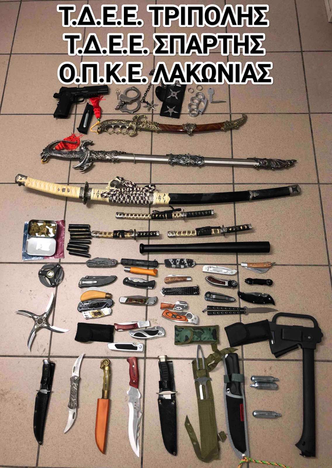Τέλος, σε έρευνα που πραγματοποιήθηκε σε οικία των συλληφθέντων, βρέθηκαν και κατασχέθηκαν: