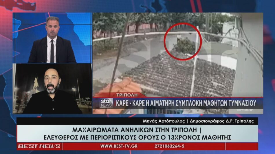 Στον Ανακριτή Τρίπολης βρέθηκε σήμερα ο 13χρονος που ενεπλάκη στο άγριο επεισόδιο με τα μαχαιρώματα που είχε ως αποτέλεσμα ο συμμαθητής του να νοσηλεύεται στην εντατική.