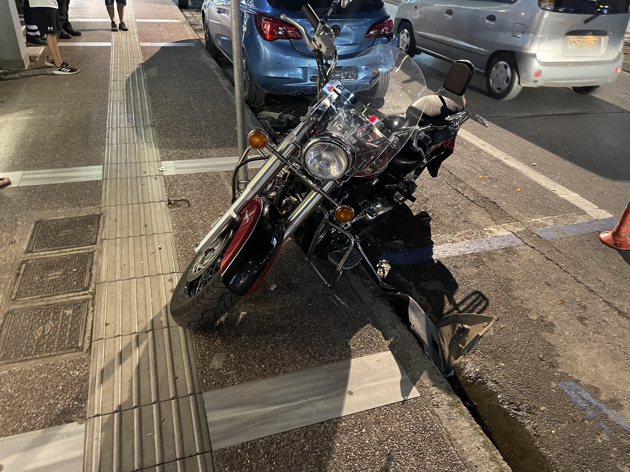 Παραπλεύρως βρισκόταν και μια μοτοσικλέτα που φαίνεται να έχει επίσης υποστεί υλική ζημιά.