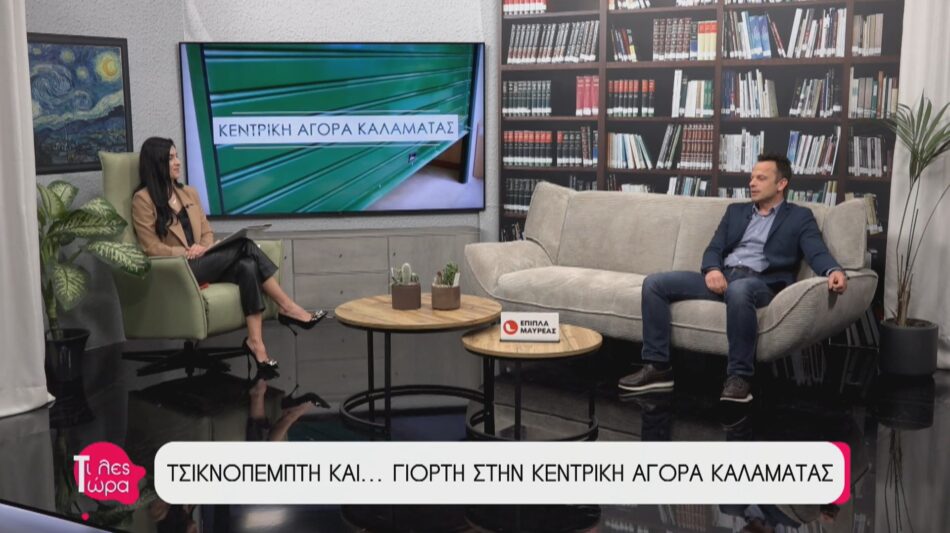 Η Κεντρική Αγορά Καλαμάτας φόρεσε τα γιορτινά της.  Ο Πρόεδρος της Κ.Α.Κ. Γιάννης Δούβας βρέθηκε καλεσμένος στην εκπομπή «Τι Λες Τώρα» με την Αναστασία Μάντζαρη, προσκαλώντας  όλο τον κόσμο στη μεγάλη γιορτή της Τσικνοπέμπτης. Με ζωντανή μουσική, παραδοσιακά κεράσματα και άφθονο κέφι, η Αγορά μετατρέπεται στην καρδιά των αποκριάτικων εκδηλώσεων, προσφέροντας μια μοναδική εμπειρία στους επισκέπτες. Παράλληλα, συζητήθηκε ο σχεδιασμός για τον εκσυγχρονισμό του χώρου, μέσα από στοχευμένες πρωτοβουλίες που ενισχύουν τους τοπικούς παραγωγούς και επιχειρηματίες.