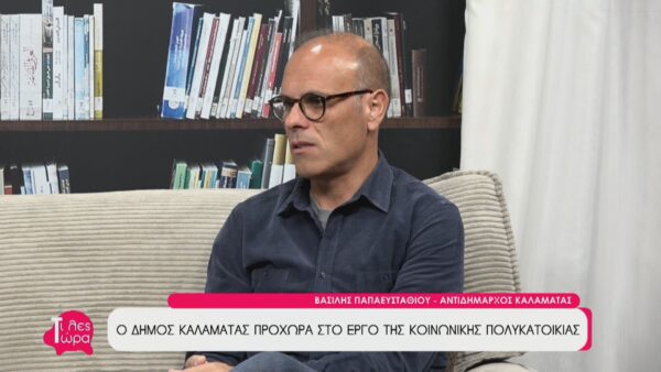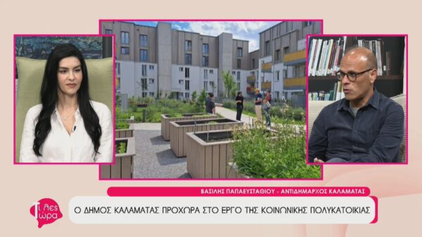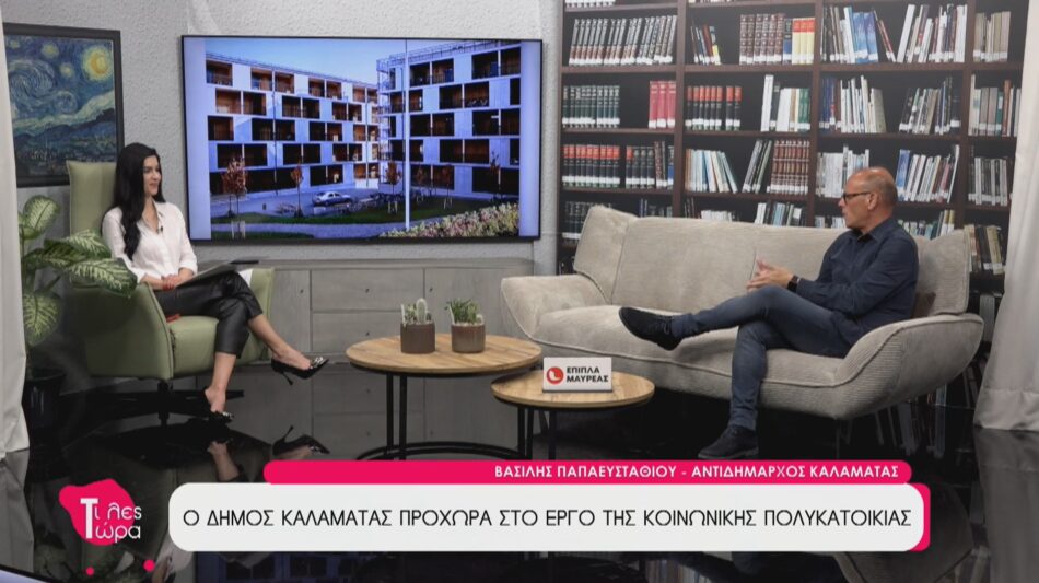 O Αντιδήμαρχος Καλαμάτας, Βασίλης Παπαευσταθίου βρέθηκε καλεσμένος στην εκπομπή «Τι λες τώρα με την Αναστασία Μάντζαρη βρέθηκε Στο επίκεντρο της συζήτησης βρέθηκε η ευρωπαϊκή επιτυχία του Δήμου: η έγκριση κατασκευής μιας πρότυπης κοινωνικής πολυκατοικίας στη θέση Πλακωτά. Πρόκειται για ένα έργο που απέσπασε την απόλυτη βαθμολογία (15/15) ανάμεσα σε εκατοντάδες προτάσεις, εξασφαλίζοντας 20 σύγχρονα, ενεργειακά αυτόνομα διαμερίσματα για οικογένειες που έχουν ανάγκη, βασιζόμενο στην έννοια της προσιτής κατοικίας και όχι της δωρεάν κατοικίας.