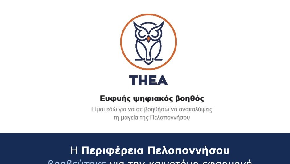 Η Περιφέρεια Πελοποννήσου διακρίθηκε για το chatbot Thèa, μια καινοτόμο εφαρμογή τεχνητής νοημοσύνης που υλοποιήθηκε σε συνεργασία με την COSMOTE. Το Thèa αποτελεί ένα σύγχρονο ψηφιακό εργαλείο εξυπηρέτησης επισκεπτών, το οποίο απαντά δυναμικά και με σύνθετο τρόπο σε ερωτήματα χρηστών, αντλώντας και συνδυάζοντας πληροφορίες από την επίσημη ψηφιακή πλατφόρμα Visit Peloponnese.