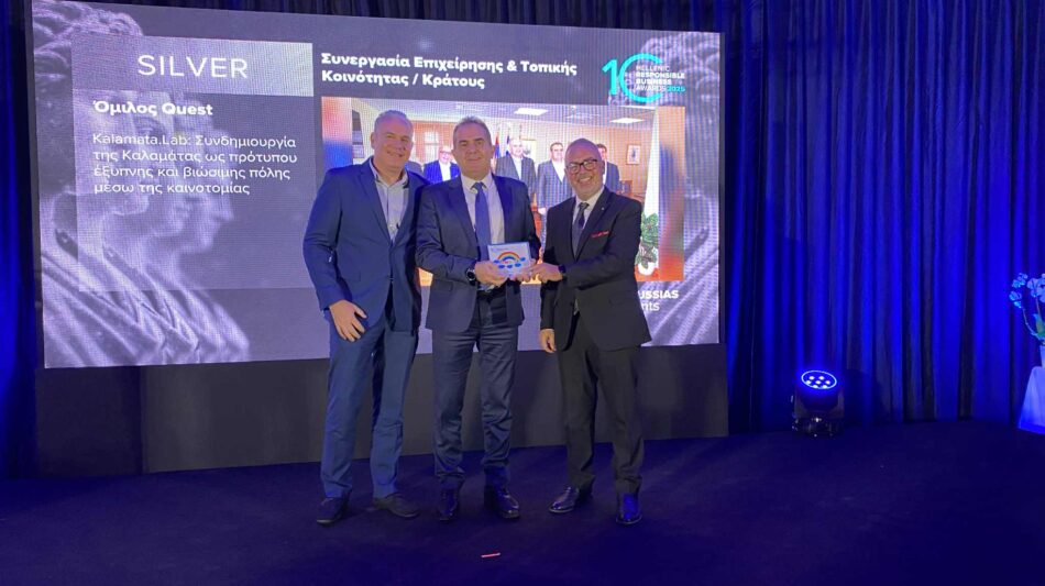 Σημαντική διάκριση απέσπασε ο Δήμος Καλαμάτας για το έργο «Kalamata.Lab: Συνδημιουργία της Καλαμάτας ως πρότυπου έξυπνης και βιώσιμης πόλης μέσω της καινοτομίας». Αποτελεί συνεργατική πρωτοβουλία του Δήμου και του Ομίλου Quest, που στοχεύει να καταστήσει την Μεσσηνιακή πρωτεύουσα κέντρο εφαρμοσμένης καινοτομίας και βιώσιμης ανάπτυξης.