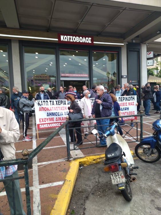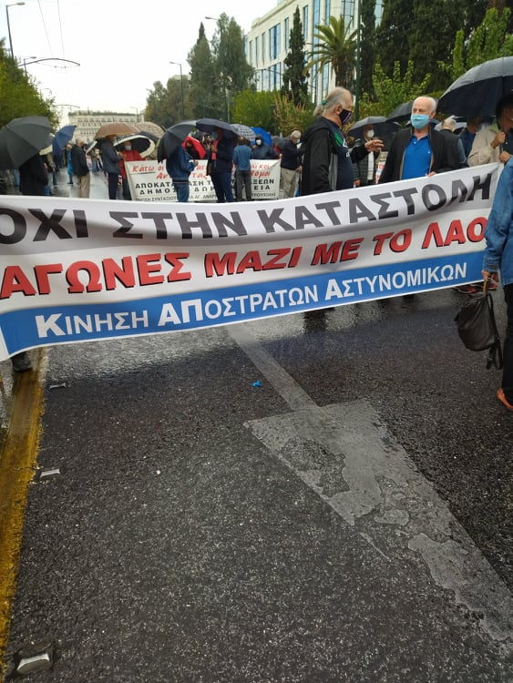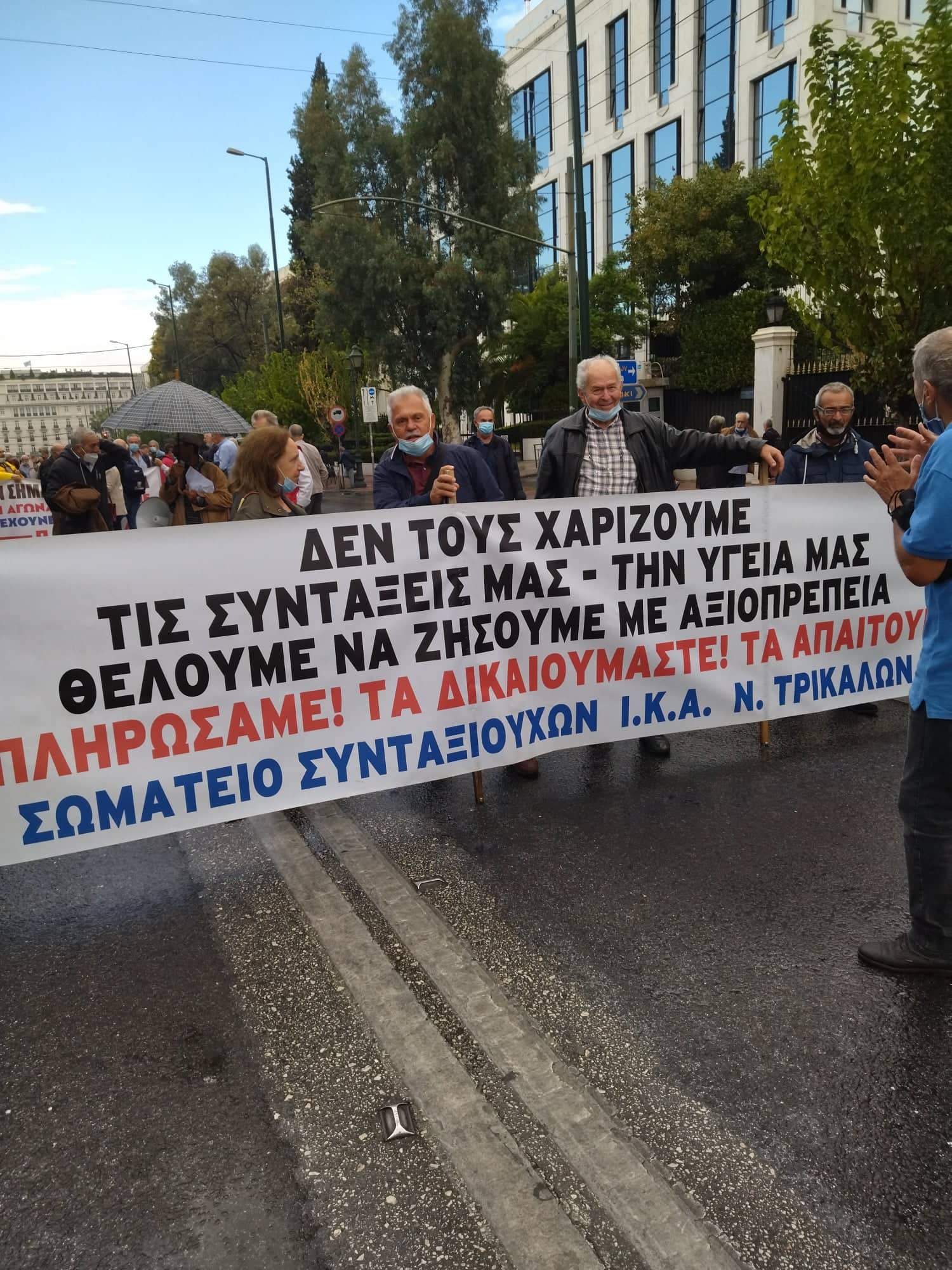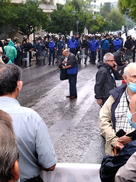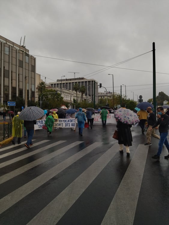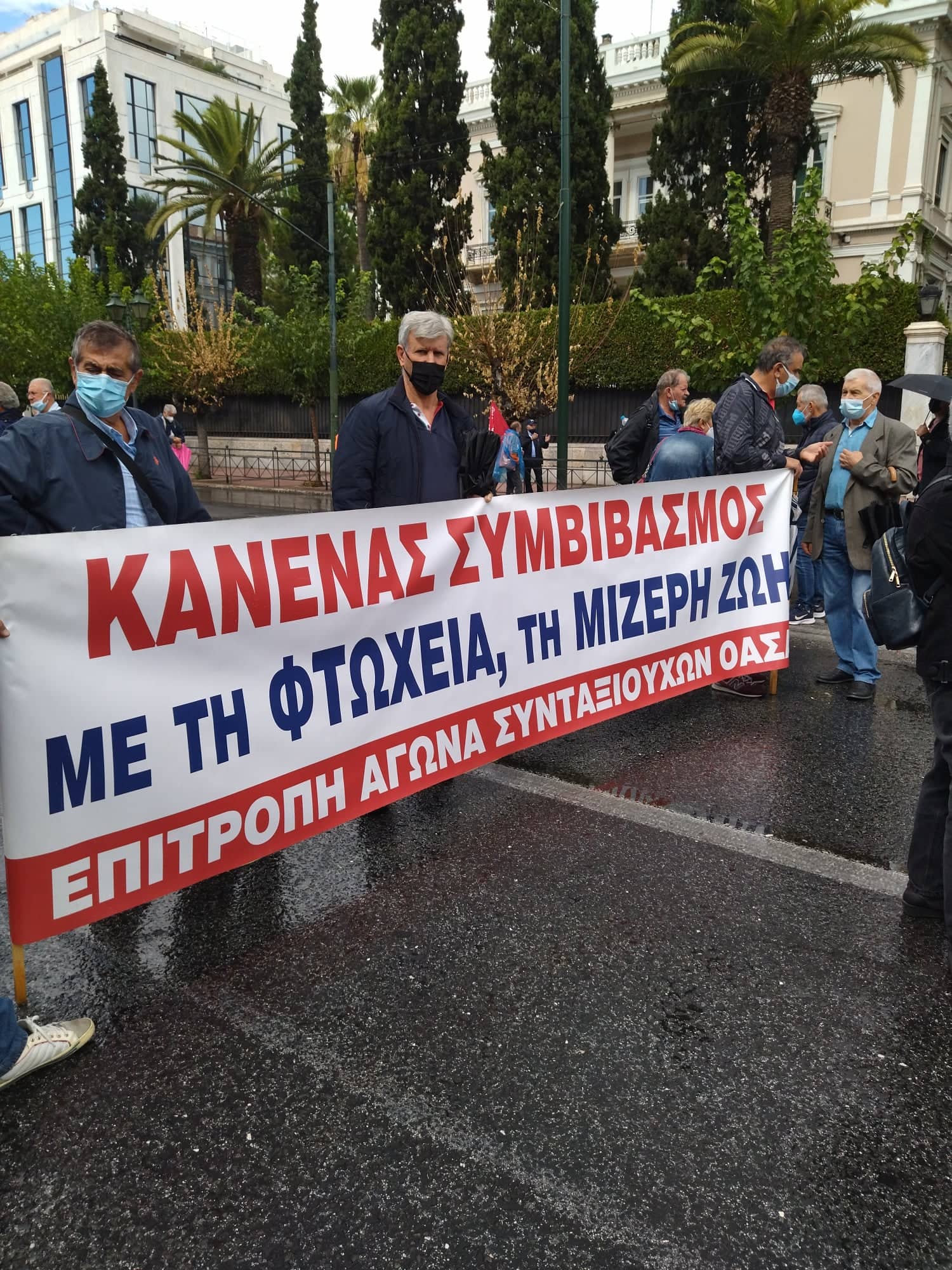 «Για τους συνταξιούχους δεν υπάρχει μία, λεφτά υπάρχουν μόνο για την πλουτοκρατία» και «Εμπρός λαέ μη σκύβεις το κεφάλι, ο μόνος δρόμος είναι αντίσταση και πάλη», ήταν μεταξύ των συνθημάτων των συνταξιούχων που συγκεντρώθηκαν στην πλ. Κλαυθμώνος, όπου μίλησε ο Δήμος Κουμπούρης – πρόεδρος της Ομοσπονδίας Συνταξιούχων ΙΚΑ και αμέσως μετά, παρά τη δυνατή βροχή, πορεύθηκαν δυναμικά ως το Μέγαρο Μαξίμου.