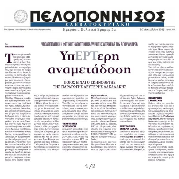 το οποίο δημοσιεύτηκε στην έντυπη έκδοση του περασμένου Σαββατοκύριακου της Εφημερίδας, Peloponnisos.