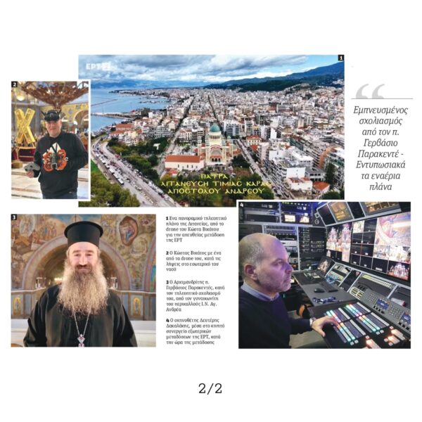 τον πατρινό χειριστή drone, Kostas Vikatos, για τα θαυμάσια εναέρια πλάνα εντός & εκτός του Ναού καθώς και κατά την διάρκεια της Λιτανείας,