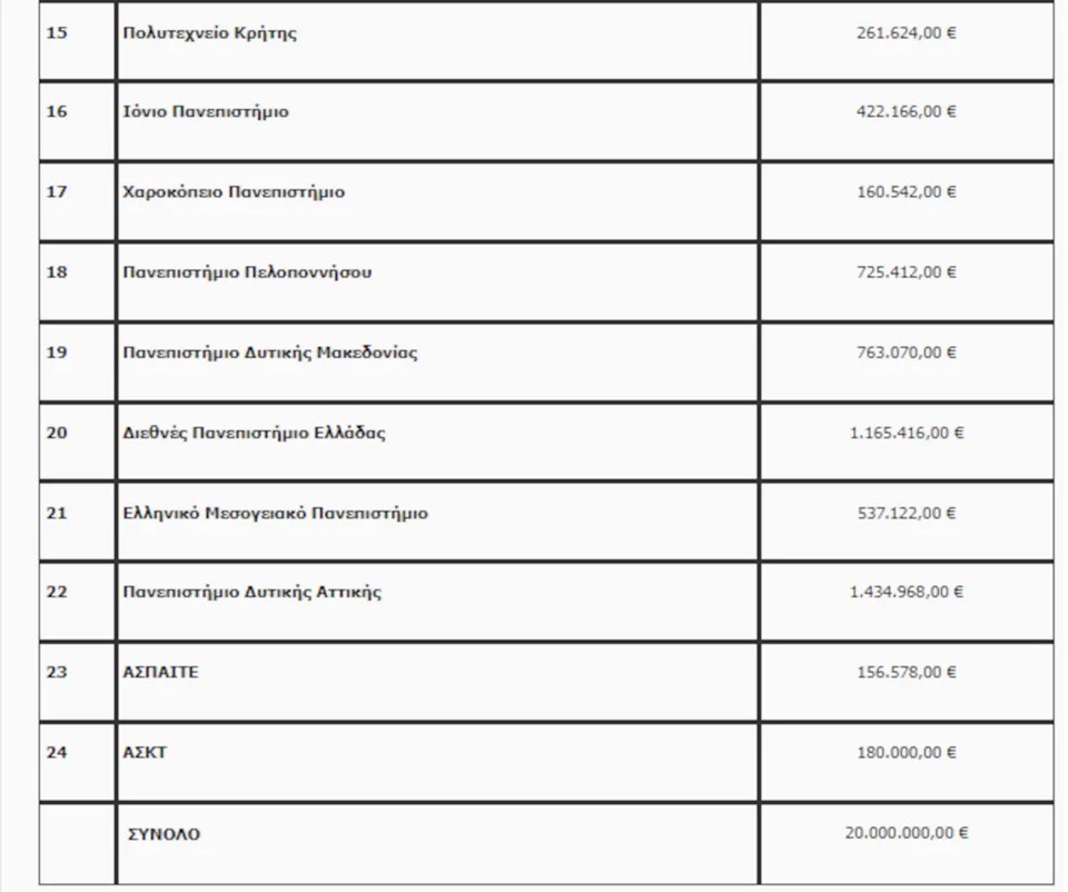 Στη σχετική ανακοίνωση του υπουργείου Παιδείας αναφέρονται τα εξής: «Υπεγράφησαν από την Υπουργό Παιδείας και Θρησκευμάτων, κα Νίκη Κεραμέως, αποφάσεις με τις οποίες αποδίδεται στα ΑΕΙ έκτακτη επιχορήγηση 20 εκ. ευρώ και κατανέμονται 400 θέσεις μελών ΔΕΠ.