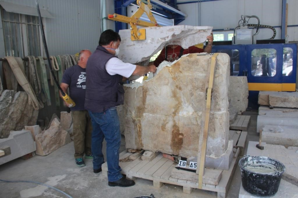 Προκειμένου να επιτευχθούν οι ανωτέρω στόχοι, στις περιοχές επέμβασης στο μνημείο, μεταξύ άλλων: (i) έλαβαν χώρα εργασίες καταβίβασης λίθων επιστυλίων, απομακρύνσεις από το μνημείο κιόνων ολόσωμων (Εικ. 1), και αποσυναρμολογήσεις λίθων κρηπίδας και ευθυντηρίας, (ii) πραγματοποιήθηκαν εργασίες ενίσχυσης της θεμελίωσης, με την κατασκευή τοιχαρίων υποστήριξης και αντιστήριξης στο δυτικό θεμέλιο, και τη διαμόρφωση στρώσης από σταθεροποιημένη άργιλο μεταξύ του βραχώδους υποβάθρου και των λίθων ευθυντηρίας, (iii) αποκαταστάθηκε η ακεραιότητα των αποσυναρμολογημένων λίθων (με συγκολλήσεις των θραυσμάτων τους καθώς και συμπληρωματικών τεμαχίων τους, Εικ. 2), (iv) αναστηλώθηκαν οι τρεις λίθοι του βόρειου επιστυλίου (Εικ. 3, 4), ανατάχθηκαν οι αποκαταστημένοι λίθοι στις μακρές πλευρές και επανήλθαν στο μνημείο οι τρεις κίονες (Εικ. 5, 6), και τέλος (v) πραγματοποιήθηκε η επανασύνδεση, με νέα στοιχεία από τιτάνιο, όσων λίθων είχαν εκ της κατασκευής τους μεταξύ των συνδέσεις.